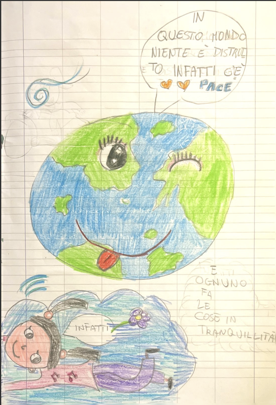 Ho scelto il verso “aleggiava sicura per baciare il suo ultimo mondo”, perché mi fa pensare agli ebrei che se ne sono andati nei campi di concentramento e la farfalla che se ne va dai campi di concentramento toccando il suo ultimo mondo.
